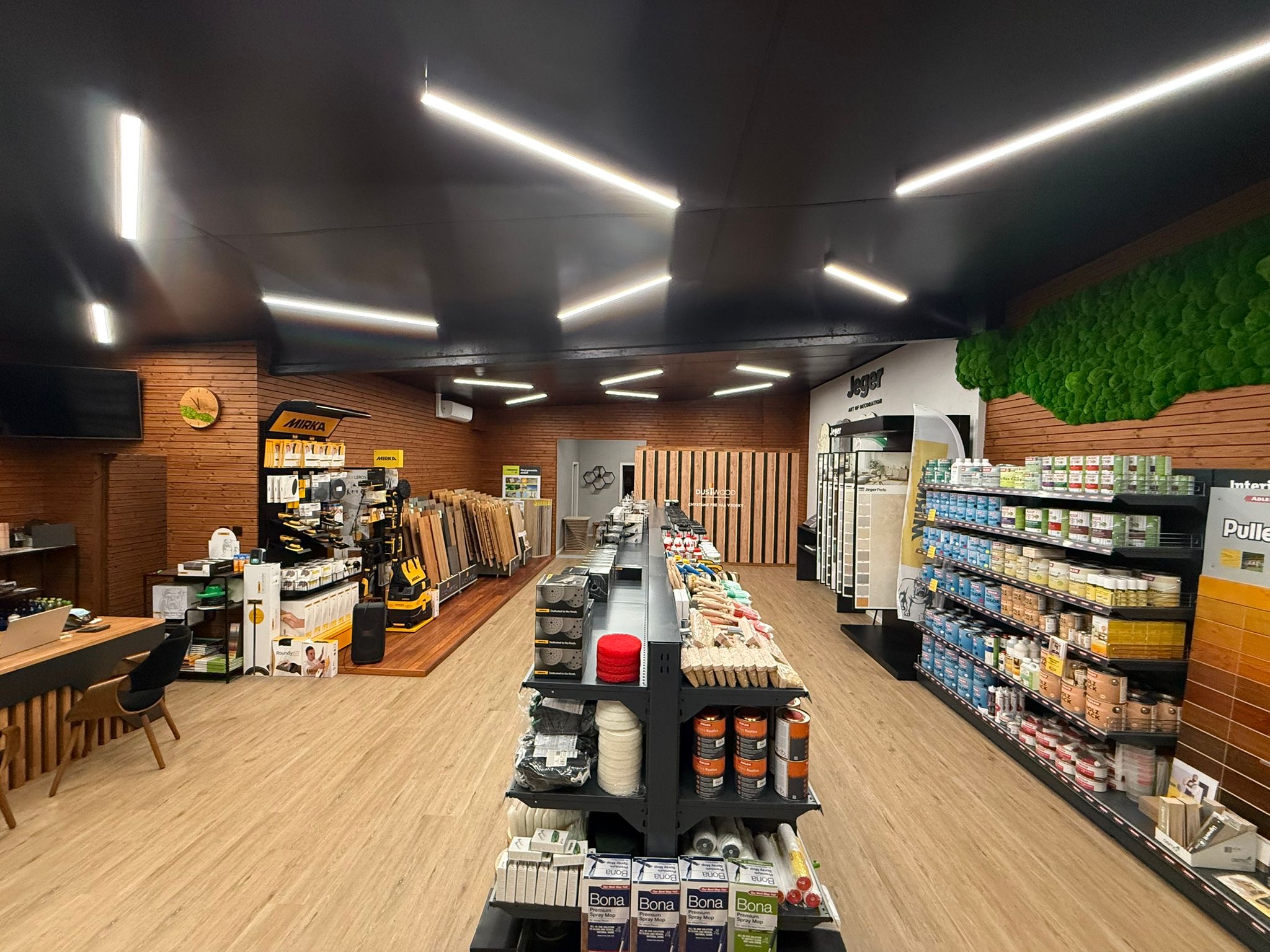 V DUSWOOD nájdete široký výber prírodných olejov, voskov a lakov na drevo určených na interiérové aj exteriérové použitie. Ponúkame aj dekoratívne nátery a stierky na steny, ktoré predstavujú moderné riešenia pre dizajnové povrchy. Okrem toho u nás nájdete podlahové systémy a príslušenstvo – od vinylu a parkiet cez OSB dosky až po skrutky a montážne klipy. Samozrejmosťou je odborné poradenstvo a praktické ukážky aplikácií, aby ste si vedeli správne vybrať a efektívne pracovať s našimi produktmi. Pomáhame vytvárať kvalitné a funkčné povrchy v rodinných domoch, kanceláriách aj komerčných priestoroch.