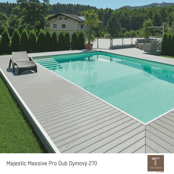 Extrémne odolné masívne terasové dosky Majestic Massive Pro boli vyvinuté špeciálne pre vysoko namáhané priestory. Terasové dosky sú chránené tenkou vrstvou polyméru (PVC), ktorá ich chráni pred vonkajšími vplyvmi, poškriabaním a škvrnami všetkého druhu. Terasa si zachováva prirodzený vzhľad dreva a vďaka ochrannej vrstve zostane v perfektnom stave s minimálnymi nárokmi na údržbu a čistenie.