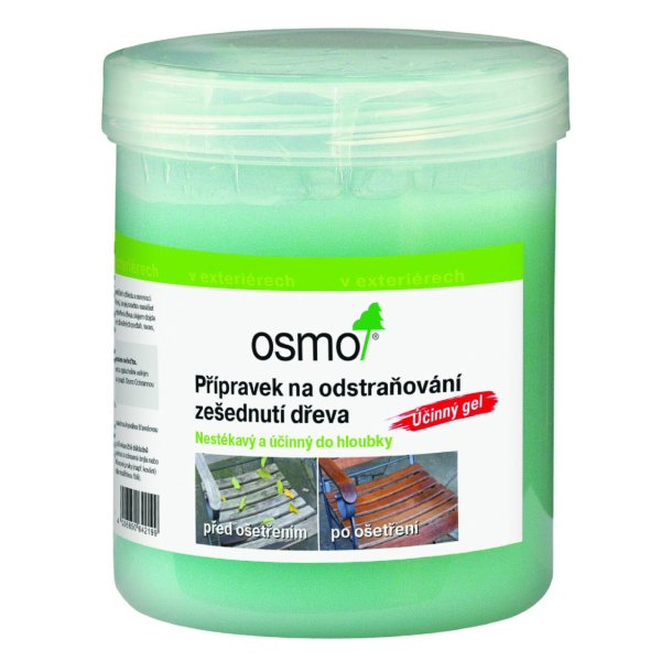 OSMO – ODŠEĎOVAČ DREVA GÉL je vysoko účinný čistiaci gél, na očistenie zašednutého dreva vo vonkajších priestoroch. Odstraňuje šednutie dreva, je hustej konzistencie a preto nesteká a nekvapká. Dá sa ľahko rozotierať, aj na zvislých plochách, nesteká. Gél pôsobí do hĺbky, koncentrát špeciálne vyvinutý na bezproblémové odstránenie zeleného povlaku / porastu na ošetrených aj neošetrených povrchoch dreva.