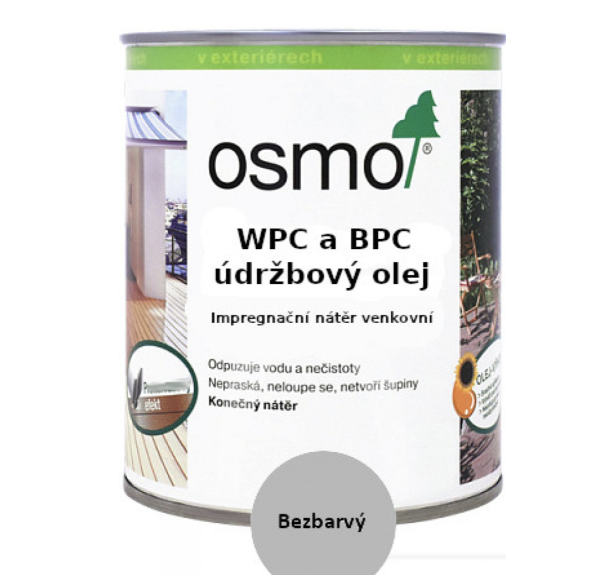 Osmo WPC & BPC údržbový olej je bezfarebný, hodvábne matný údržbový olej, ktorý sa vsakuje do dreva a nevytvára na povrchu žiadny film. Vďaka tejto impregnácií sa ošetrené drevo stáva vode odolným a zvyšuje sa jeho odolnosť proti tvorbe škvŕn a znečistení.