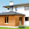 - Použitie: zvislé drevené prvky v exteriéri – fasády, obklady, balkóny, pergoly, ploty, okná, dvere, krovy