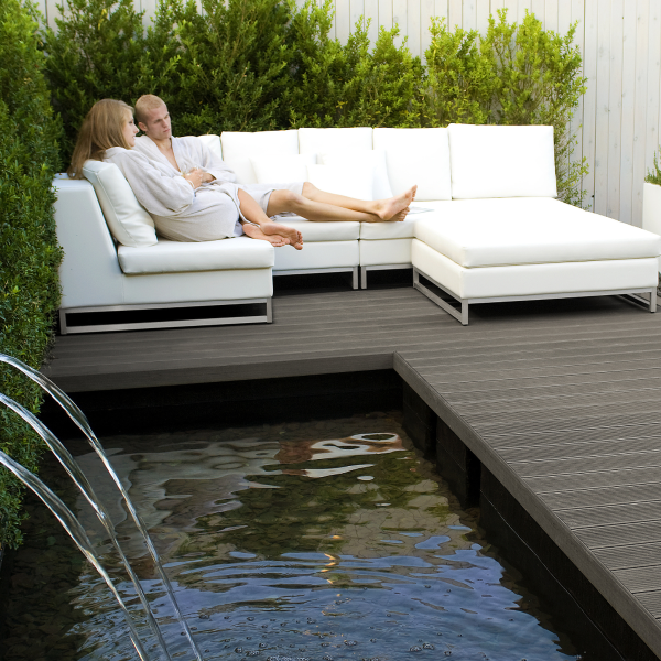 Tieto terasové dosky spĺňajú najvyššie štandardy z hľadiska komfortu, jednoduchej starostlivosti a trvanlivosti terasy. Na tejto terase nehrozí pošmyknutie ani za mokra. Terasové dosky sú mimoriadne odolné proti pošmyknutiu, neštiepia sa a nepukajú.