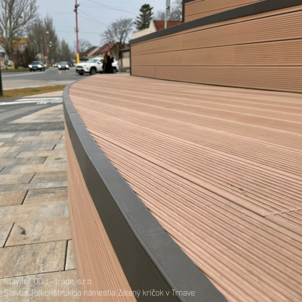 WPC dosky z tohto systému môžete používať obojstranne. Na jednej strane je drážkovanie jemnejšie, na druhej strane drsnejšie.